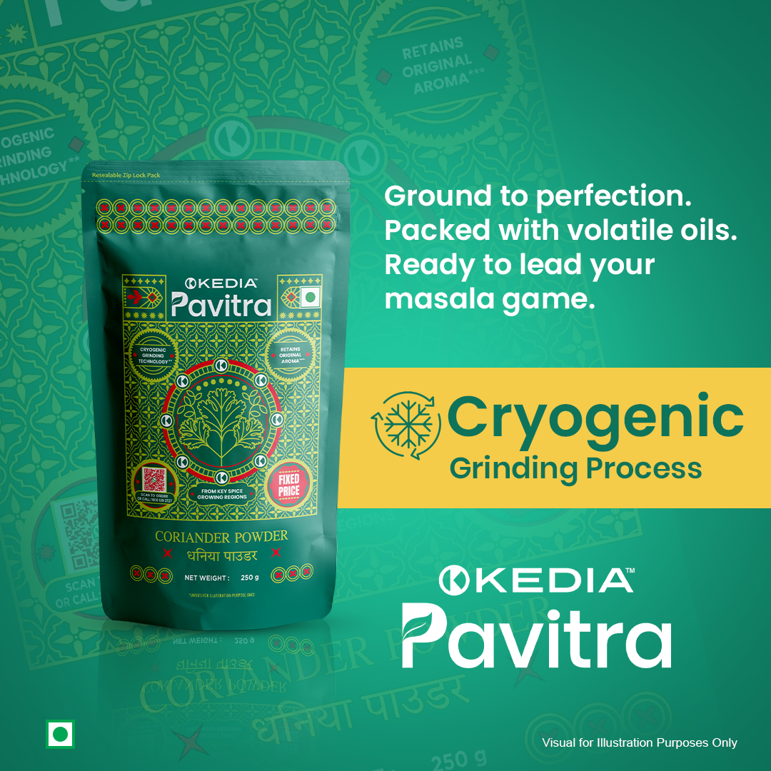 Made from whole seeds sourced from Rajasthan’s renowned coriander belt. Sun-cured and cryogenically ground to preserve essential oils, citrusy warmth, and freshness — free from adulterants and polish.