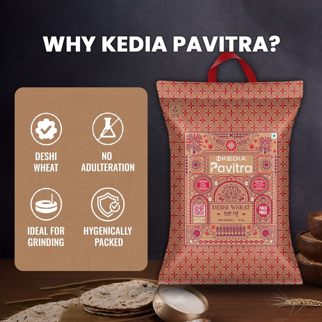 For generations, wheat has been an integral part of Indian households, symbolizing nourishment and abundance. At Kedia Pavitra, we continue this tradition with our carefully sourced Deshi Wheat. Each grain is hand-harvested from trusted farms, naturally sun-dried, and stored under optimal conditions to preserve its natural freshness and quality. Our Deshi Wheat reflects the values of purity and care, bringing you wheat that is as close to nature as possible—wholesome, unadulterated, and full of natural goodness.