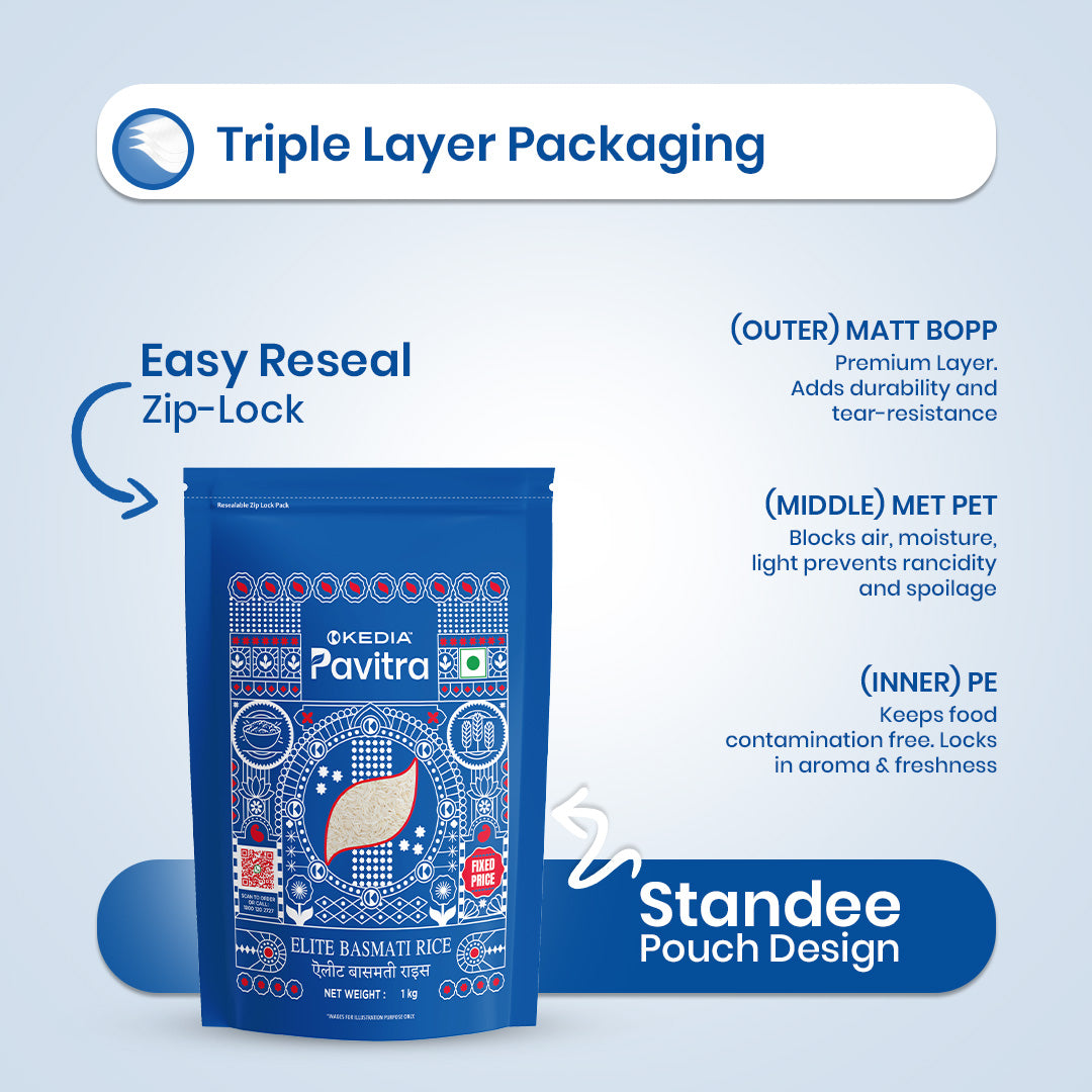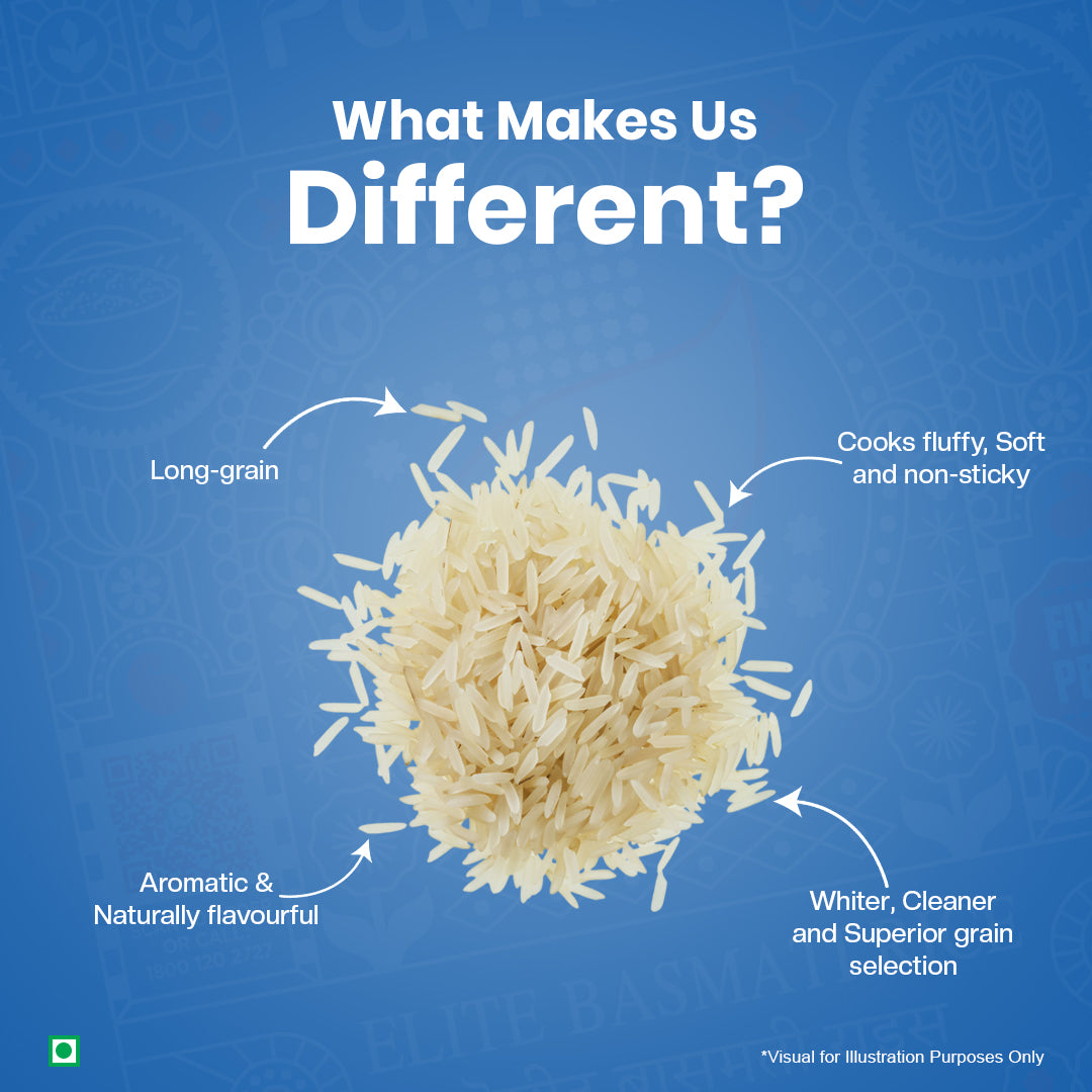 Discover the delectable taste of Elite Basmati Rice, sourced from the top quality basmati-growing regions of Punjab and Haryana. Cultivated in these well-known rice belts, this basmati variety is valued for its naturally long grains, pleasant aroma, and characteristic sweet taste. Carefully processed to maintain grain integrity, Elite Basmati Rice cooks evenly to deliver soft, fluffy, and non-sticky results.