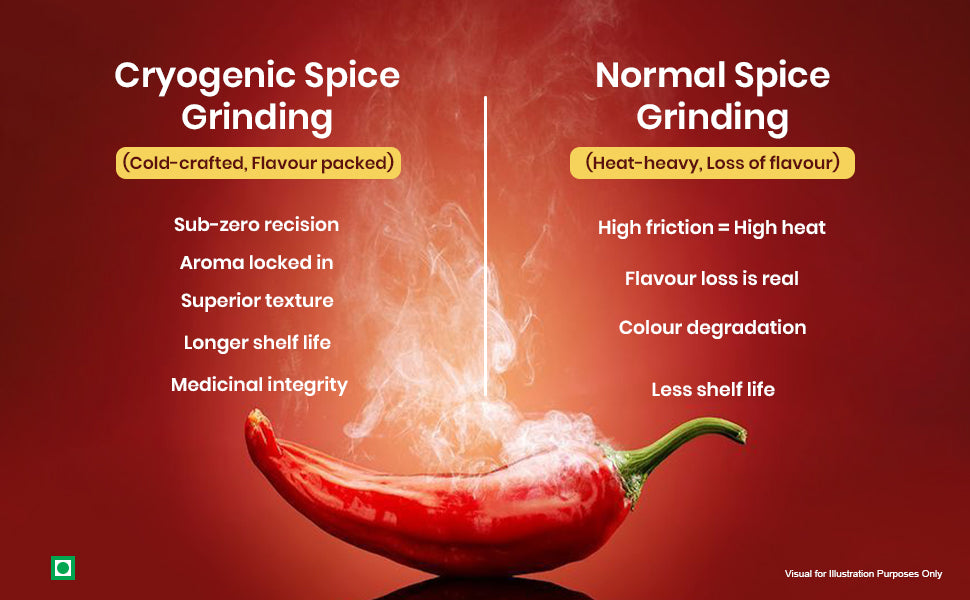 - Cryogenic Grinding: Ultra-low temperature (-170°c) processing preserves aroma, flavour, and heat