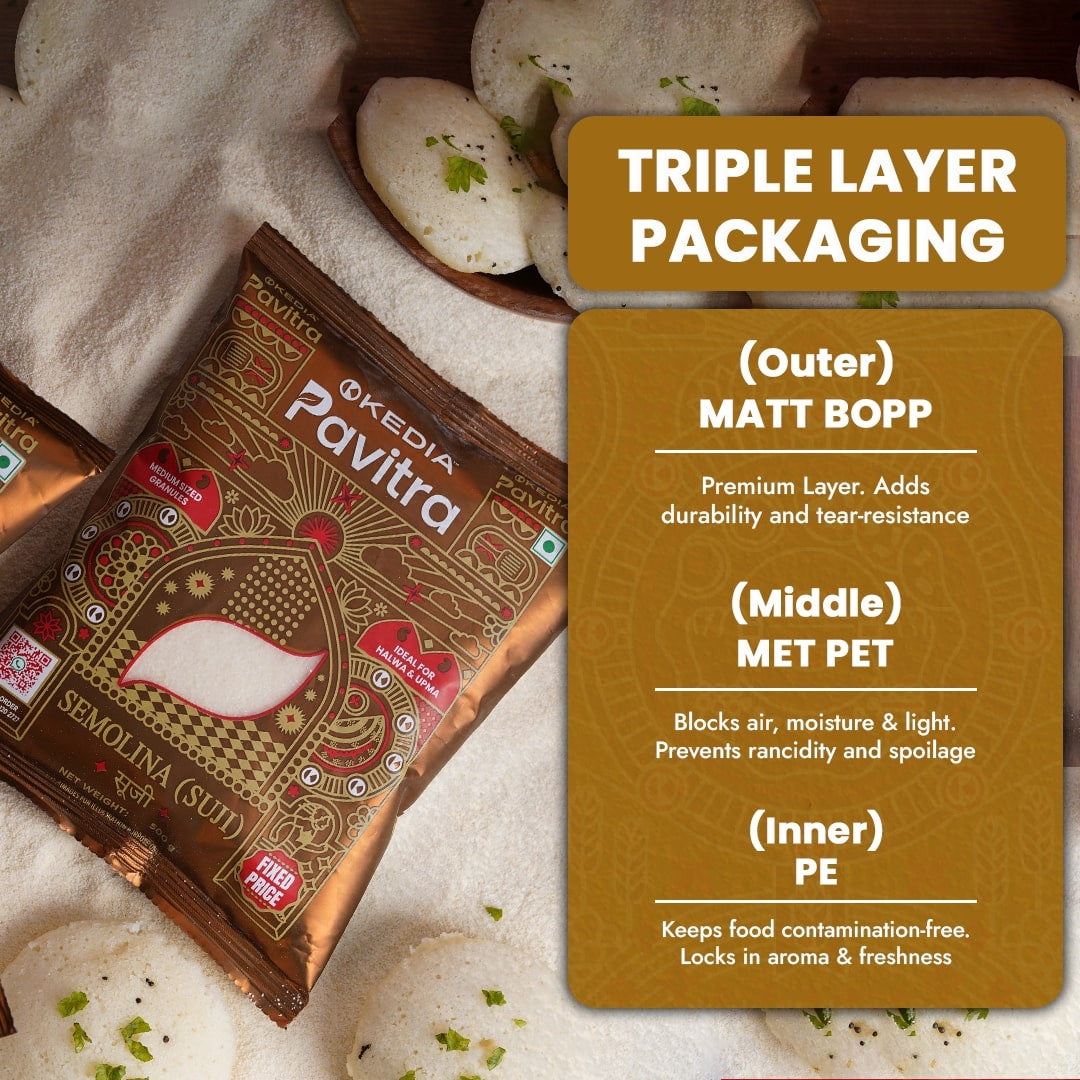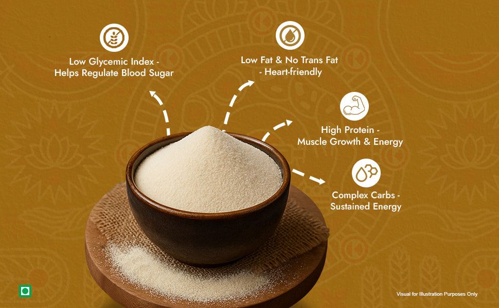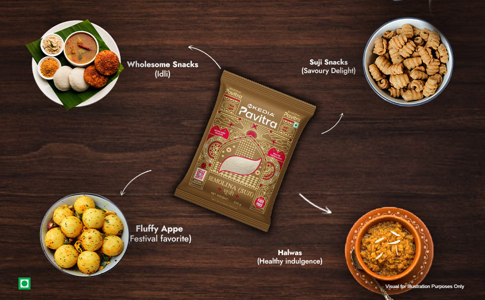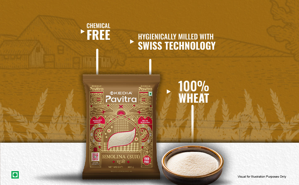 Made from 100% premium-quality wheat grown in the fertile fields, our Suji is known for its natural sweetness and high protein content. Carefully milled to a fine, consistent texture, it retains the wheat’s natural aroma and essential nutrients. Whether you're making upma, halwa, idlis, or crispy snacks, this Suji delivers soft, flavorful, and wholesome results—every single time.