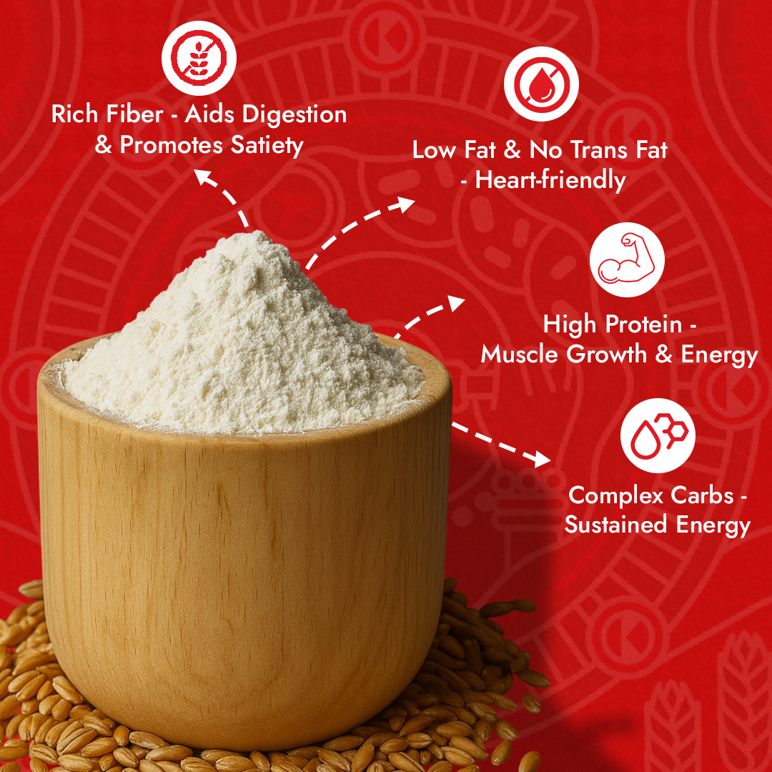 Experience the rich taste and unmatched softness of rotis made with Sharbati Superior Atta. Milled from 100% premium-quality Sharbati wheat grown in the fertile fields of Sehore, Madhya Pradesh, this atta is known for its natural sweetness, grains, and high protein content. Each batch is carefully stone-ground at a slow and gentle speed to preserve its nutritional value and ensure a fresh, aromatic flour that gives you fluffy, wholesome chapatis every time.